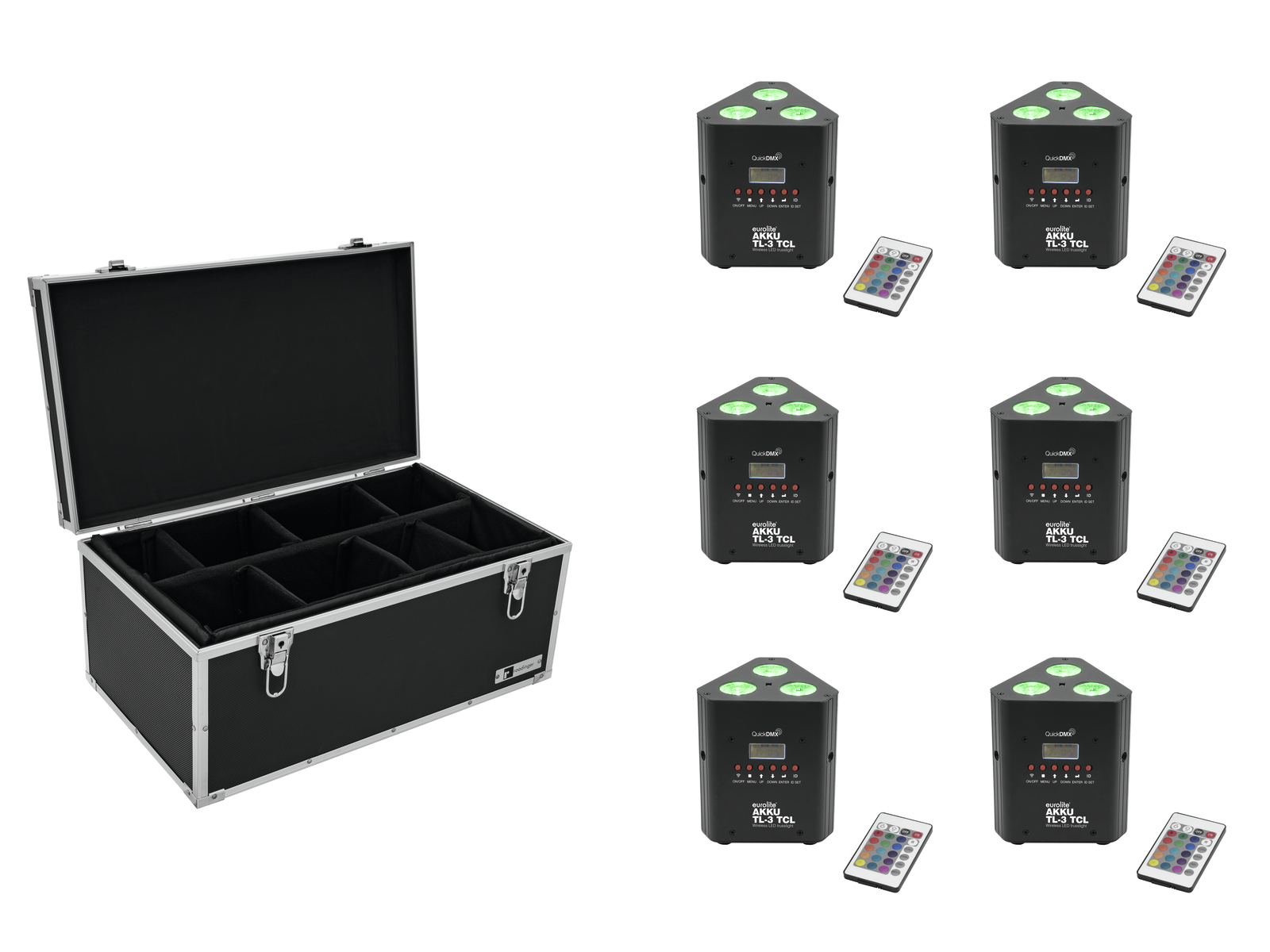Eurolite Set 6x AKKU TL-3 TCL Trusslight QuickDMX + Case TDV-1