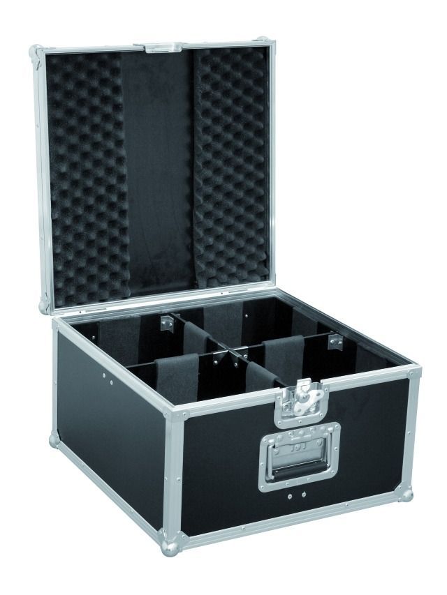 20: Eurolite Transportcase für 4 x PAR-56 Spot, kurz: Features: Innenraum aufgeteilt in vier Fächer für PAR-56-ScheinwerferHochwertige Verarbeitung mit 7 mm mehrschichtig verleimtem Birkenmultiplexholz, schwarz laminiertAluminiumprofilrahmen (30 mm) mit ab