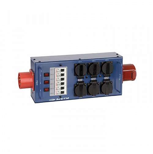 20: Showtec Powersplitter 32 ( Powersplit mit Sicherung ): Features:Power-Input: 380V, 32 Ampere Input-Output: 5 Pol 32 Amp CEE Power-Output: 6x 230V, 16 Ampere Output-Anschluss: Schuko Sicherung: C-16 Maße (LxBxH): 477 x 164 x 127mm Gewicht: 4,2 kgPA-Equipm