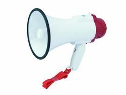 Omnitronic MP-10 Megaphon: Features:10 W Megaphon in kleiner Bauform mit integriertem MikrofonLautstärke stufenlos regelbarPistolengriff und TrageriemenDurch hochwertiges Kunststoffgehäuse (ABS) schlag- und kratzfestGeringes GewichtFür 4 x 1,5 V Mono-B