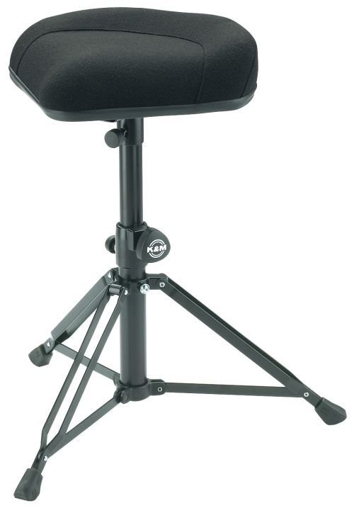 20: K&M 14056 Drummersitz »Nick«, schwarz: Professioneller Drummersitz mit stabilem 3-Fuß-Unterteil, stufenweise höhenverstellbar. Die große Klemmschraube und ein zusätzlicher Rastbolzen ermöglichen eine einfache und sichere Bedienung. Der große ergon