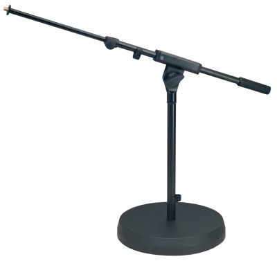 K&M 25960 Mikrofonstativ, schwarz: Niedriges Mikrofonstativ komplett mit ausziehbarem Schwenkarm für Bass-Drums oder spezielle Aufnahmetechniken. Der schwere Guss-Rundsockel ist mit einer Gummieinlage zur Trittschalldämpfung versehen. Die Arretierung de