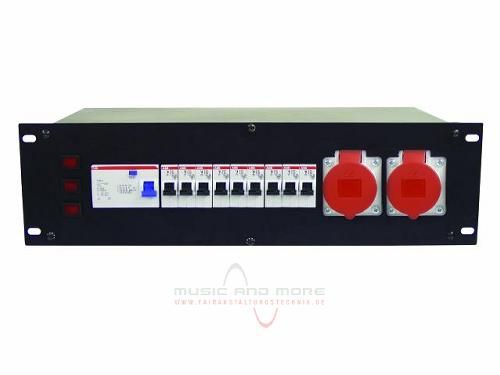 20: Eurolite SB-1100 19 Zoll Unterverteilung 32A: Features:Besonders geeignet zum Aufbau großer StromverteilungenZum Rackeinbau werden nur 3 HE benötigt32 A Drehstromeingang über Anschlussleitung und Stecker32 A Drehstromausgang über Geräteanbausteckdose