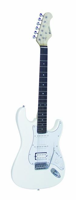 20: Dimavery ST-312 E-Gitarre, weiß: Features: ST-FormFarbe: weißFinish: hochglänzendKonstruktion: geschraubter Ahorn-HalsGriffbrett: Palisander, 22 BündeKorpus: LindePickups: 2 x Single Coils + 1 x HumbuckerRegler: 1 x Volume, 2 x TonPU-Schalter: 5-fachB