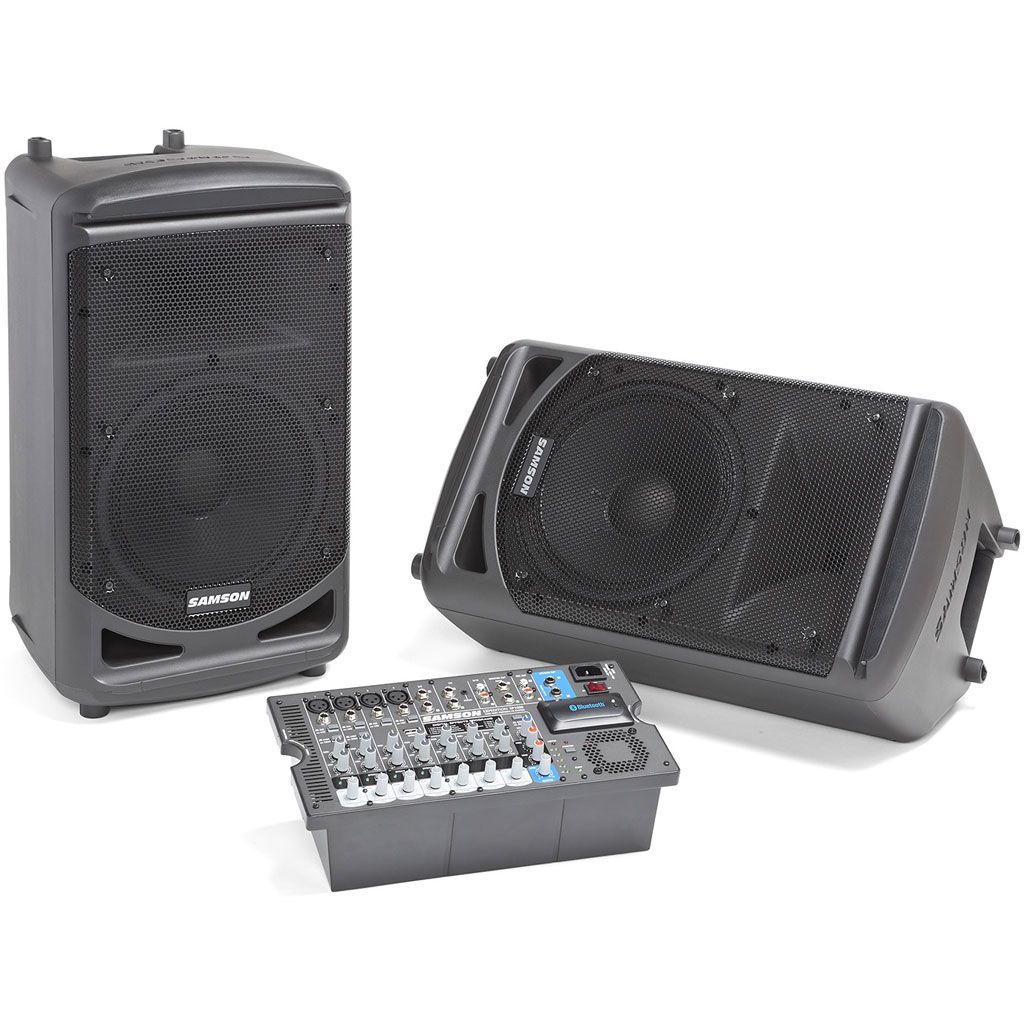20: Samson Expedition XP1000B: Features:Ausgangsleistung: 1.000 Watt Peak (2 x 500 Watt) Bestückung: 1 x 10` LF-Treiber und 1` HF-Treiber Equalizer: 2-Band (Treble, Bass), Music/Speech Switch Abstrahlwinkel: 60° x 90° Ein-/Ausgänge: 4 x Mic/Line-Inputs (X
