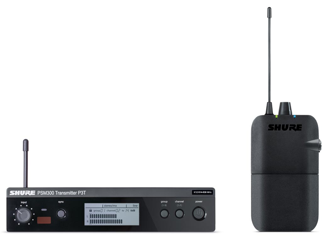 Shure PSM 300 P3TER S8 Stereo In-Ear System (823 bis 832 MHz): Das PSM®300 Stereo In-Ear Monitoring System bietet drahtloses Stereo Monitoring mit neuer, detailreicher 24-bit Audio Verarbeitung und sichere Funkübertragung. Das System beinhaltet: P3T Fun
