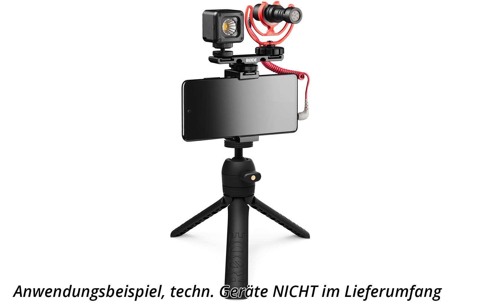 20: Rode Vlogger Kit Universal: RØDE präsentiert mit dem `Vlogger Kit` eine ideale All-in-One Lösung für alle Smart- und iPhone-Filmer, die professionelle Tonqualität abliefern möchten.Es gibt verschiedene Kits für iPhones (Vlogger Kit iOS), für Smart