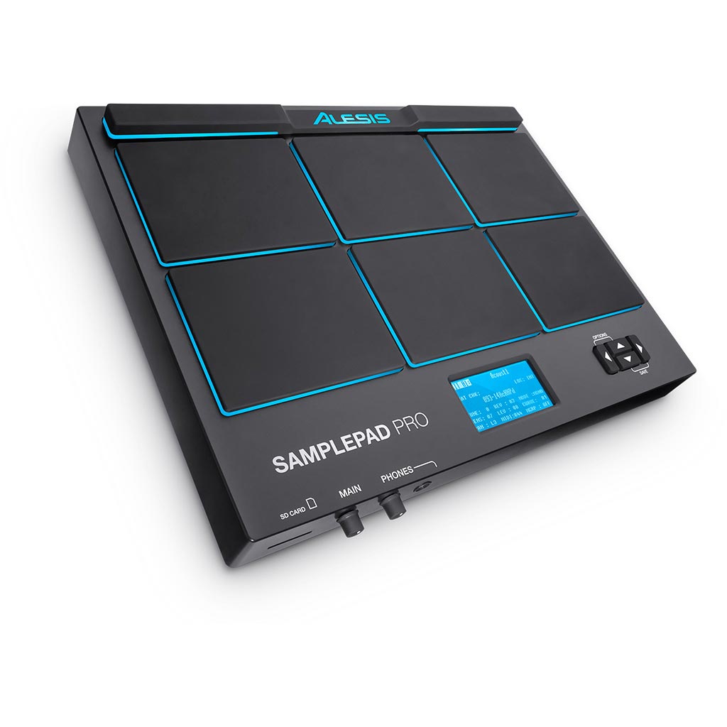 Alesis Sample Pad Pro: Features:8 Two-Shot Gummi-Pads mit blauer LED-Beleuchtung Zwei zusätzliche Pad-Eingänge, plus Kick und Hi-Hat Trigger/Switch-Eingänge Speichert Sounds auf SD Karte (bis zu 30 Kits), abrufbar über USB LCD Anzeige und Editor für