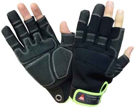 TECHNIK-3 Finger, Sicherheitshandschuhe aus Synthetikleder, Größe 12: Montagehandschuh mit 3 offenen Fingerkuppen und hohem Tragekomfort. Material: High-Quality Velcro, HiTech-Synthetikleder, gepolsterte Verstärkung in der Handinnenfläche, Aufhängeoe