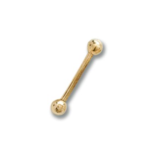 20: Barbell Hantelaus 14 Karat Gold mit zwei hohlen Aufschraubkugeln ebenfalls aus 14 Karat Gold. Der Barbell Hantelhat eine Stärke von 1.2mm und ist in drei Längen erhältlich.
