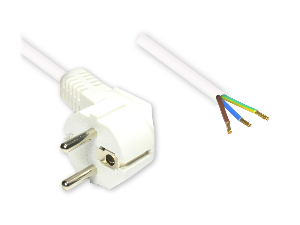**************************Netzkabel Schutzkontakt-Stecker gewinkelt mit abisolierten Enden, weiss, 3m, Good Connections