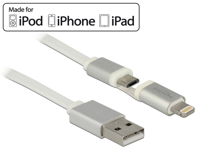 **************************USB Daten- und Ladekabel fr Apple und Micro USB Gerte 1 m wei, Delock