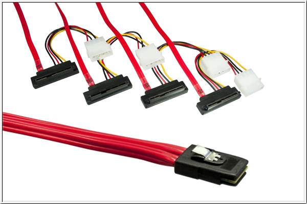 **************************Anschlusskabel SAS, Mini 36-pin Stecker (SFF-8087) auf 4x 29-pin Stecker (SFF-8482), gewinkelt, 0,75