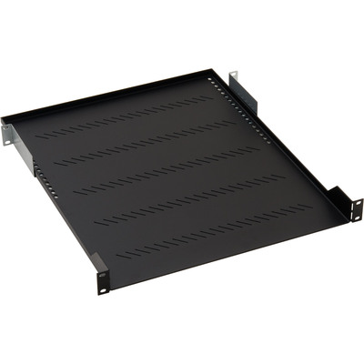 48,26cm (19) Fachboden, perforiert, 1HEFarbe schwarzTiefe 750mmTraglast 40kgBefestigung an vorderer und hinterer 48,26cm (19) ProfilschieneFest montierter FachbodenBeipack: 8 Schrauben M6x10, 8 Kunststoffunterlegscheiben, 8 Kfigmuttern M6, 4 Schrauben M5x12, 2x hintere Halterung