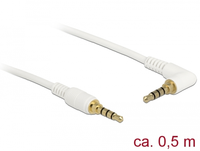 **************************Klinkenkabel 3,5 mm 4 Pin Stecker an Stecker gewinkelt, wei, 0,5m, Delock