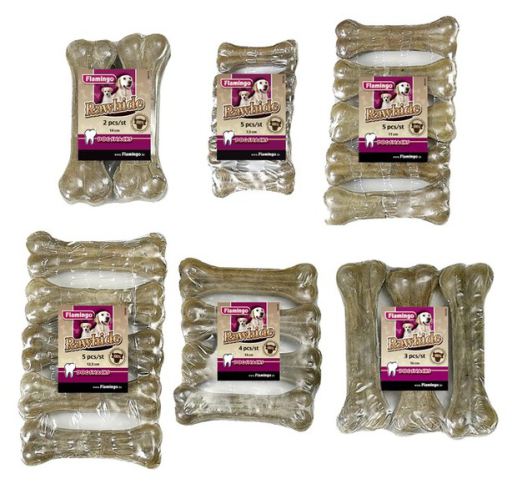 ··· Bones for Dogs Flamingo HUESO PIEL 110-115 G, 14 CM 2 UNIDS. BOLSA Rawhide bones, packed in a shrink pack.\n
