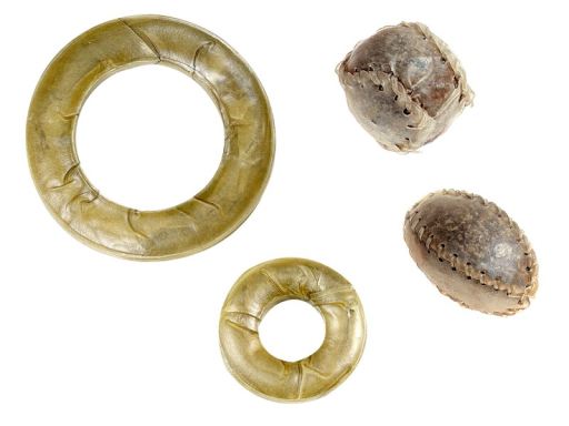 ··· Bones for Dogs Flamingo PELOTA DE BASEBALL PRENSADA 150-160 G, 12 CM 10 UNIDS. BOLSA Rawhide chewing ball and ring, packed in a bag.