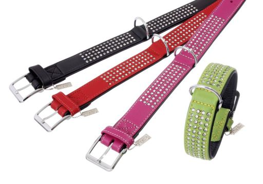 ··· Collars for Dogs Karlie VINTAGE STRASS COLLAR ROJO, 40MM 50CM INTERIOR EN NEGRO With four rows of rhinestones. Chrome-plated fittings. Noble and unique! Handselected leather hides from grazing cattles, handicrafted in Germany. 5 years guarantee.