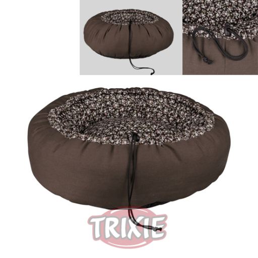 Miscota Poland, Czech Republic, Greece and Hungary - Online Shop for Pet Supplies Beds for Dogs Trixie Round Bed Antonella - Cotton/canvas cover\n- Polyester fleece filling\n- Drawstring for adjusting the width\n- Removable reversible cushion\n- Non-slip nylon bottom\n- Size: 50 cm \n- Colour: brown\n ····· 104209212
