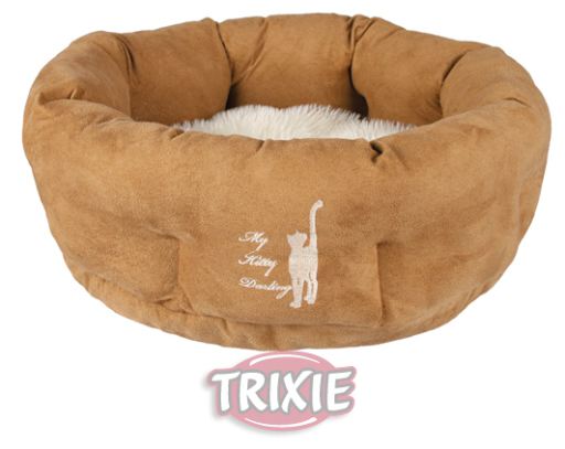 Miscota Poland, Czech Republic, Greece and Hungary - Online Shop for Pet Supplies Beds for Cats Trixie Kitty Darling Bed 50cm -Suede-look/plush-Polyester cover-Polyester fleece filling-Removable reversible cushion-With stylish My Kitty Darling embroidery-Measurements : ø 50 cm-Colour : light brown/cream ····· 104209204