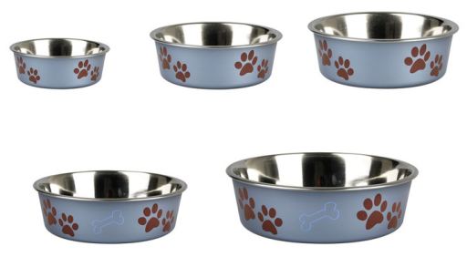 Miscota Poland, Czech Republic, Greece and Hungary - Online Shop for Pet SuppliesBowls, Feeders & Water Dispensers for Dogs Flamingo PLATO ACERO INOXIDABLE CON HUELLA ESTAMPADA AZUL METTODOSIC, 23CM With anti-slip rubber ring (removable). Easy-care. Colour blue metallic. ····· 1042010554