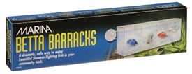 für 8.95€ kaufen ···· Miscota Poland, Czech Republic, Greece and Hungary - Online Shop for Pet Supplies Breeding Crates for Fish Hagen MARINA BETTA BARRACKS Marina Betta Barracks is a safe way to display and enjoy beautiful Siamese fighting fish in your community tank. Betta Barracks allows you to house up to four bettas at once in safe and separate chambers. The clear walls allow excellent visibility of betta colours and a cover prevents them from jumping out. Betta Barracks comes complete with suction cups for easy installation. ····· 10420160