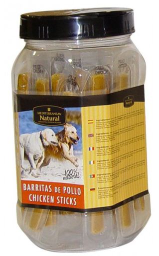 Miscota Poland, Czech Republic, Greece and Hungary - Online Shop for Pet Supplies Edible Sticks for Dogs Mediterranean Natural BARRITAS INDIVIDUALES DE POLLO 40U Composition: cereals, meat and meat by products ( min 13 % chicken), antioxidants: rosemary. Analytic constituents: protein 22,4%, fat content 10,9%, moisture 15,6%, crude ash 8,4%, fibre 1,9%, 336,9 kcal /100g ····· 1042014274