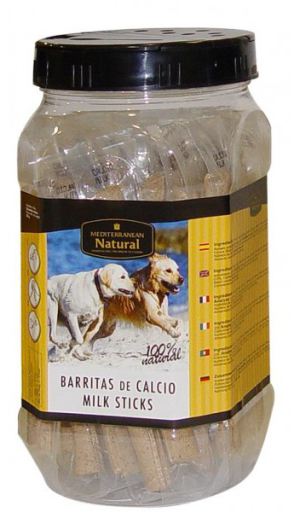 Miscota Poland, Czech Republic, Greece and Hungary - Online Shop for Pet Supplies Edible Sticks for Dogs Mediterranean Natural BARRITAS INDIVIDUALES CALCIO 40U INDIVIDUAL SEMI MOIST STICKS MILK FLAVOUR IN JAR OF 40 UN. Composition: cereals, meat, and meat by prodtucts, powedered milk( min 1,9%), antioxidants: rosemary Analytical constituents: protein 26,2%, fat content 12,6%, moisture 16% crude ash 9,8%, fibre 1,4%, 340kcal/100g, 13215 mg ca kg ····· 1042014275