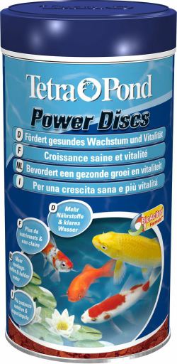 für 5.95€ kaufen ···· Miscota Poland, Czech Republic, Greece and Hungary - Online Shop for Pet Supplies Food for Pond Fish for Fish Tetra Pond Power Disc 500 -ml. 11044 manufactured by the unique, gentle Tetra process, which protects the vitamins due to low processing temperatures\n more energy for the fish due to an optimised protein-fat ratio\n with L-carnitine, for better fat intake and digestion by the fish\n less water contamination due to the optimised protein-fat ratio, leading to less ammonia being produced in the metabolic process\n colour enhancers promote the natural colouring of the fish ····· 104203065
