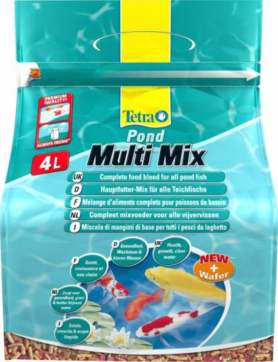 für 5.95€ kaufen ···· Miscota Poland, Czech Republic, Greece and Hungary - Online Shop for Pet Supplies Food for Pond Fish for Fish Tetra Pond Multimix 1lt- 11018 with high-quality flakes that are particulary suited to the nutritional requirements of young and smaller fish\n contains floating food sticks for all fish that prefer to eat their food at the surface of the pond\n contains sinking wafer that are particularly suited to all bottom-dwelling pond fish\n contains natural gammarus as a special delicacy. Also ideal for newts and amphibians\n the high-quality resealable plastic bag protects the food from harmful effects such as sunlight, air and dampness. This means important ingredients are protected and the food is kept fresh, making sure your fish get the best possible nutrition\n ····· 104203021