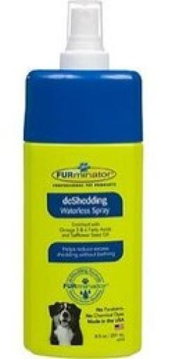 für 6.95€ kaufen ···· Miscota Poland, Czech Republic, Greece and Hungary - Online Shop for Pet Supplies Grooming & Wellbeing for Dogs Furminator Waterless Deshedding Spray (Perro) 250 Helps reduce excess shedding without bathing\n Enriched with Omega 3 & 6 Fatty Acids and Safflower Seed Oil\n This blend of natural ingredients moisturizes the coat and strengthens the hair shaft to help reduce shedding\n Contains: Natural Surfactants, Water, Hydrolyzed Wheat Protein, Hydrolyzed Oat Protein, Omega 3 & 6 Fatty Acids, Cranberry Seed Oil, Kava Extract, Calendula Extract, Vitamin E, Chamomile Extract, Aloe Vera, Papaya Leaf Extract, Safflower Seed Oil, Sunflower Seed Oil, Glycerin\n Contains no parabens, artificial colors or chemical dyes\n For topical use on dogs and cats over 6 weeks old\n Made in the USA\n ····· 1042013254