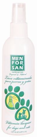 für 8.95€ kaufen ···· Miscota Poland, Czech Republic, Greece and Hungary - Online Shop for Pet Supplies Grooming & Wellbeing for Dogs Men For San LACA VITAMINADA A natural setting spray with natural nourishing agents for cats and dogs. When applied on wet hair, it allows for a professional finish and protects the coat from environmental humidity, wind and sunlight, while preventing natural fading and keeping the hair cutting effect for a longer time. It provides gentle setting that enhances the flexibility and brightness of the coat without making it greasy or dry. Neutral pH. ····· 1042013832