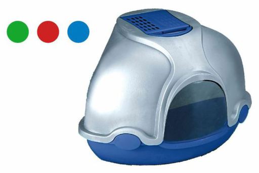 für 3.39€ kaufen ···· Miscota Poland, Czech Republic, Greece and Hungary - Online Shop for Pet Supplies Grooming & Wellbeing for Dogs Ferplast Puerta Genica Toilet Home \nIt is a well-known fact that cats are clean animals and these hygienic litter trays are specially designed to allow them to do their business in a private place. Genica is an innovative covered litter tray, patented by Ferplast, which can be placed in any room of your house, thanks to its effective anti-odour system. The door has airtight closing, complete with magnets, and a new ventilation system. Air is forced directly from the bottom to the roof of the tray, where there is a large filtering surface, consisting of three charcoal filters that are designed to neutralize any bad-smelling particles.\nThe practical hooks on the sides make the tray simpler to open for daily cleaning, while the handle on the lid allows you move the litter tray easily. Spare hygienic bags and charcoal filters are also available.\nAvailable colours: black or blue base.\n Dimensions:\n56,2 x 43,5 x h 38,4 cm ····· 1042012598