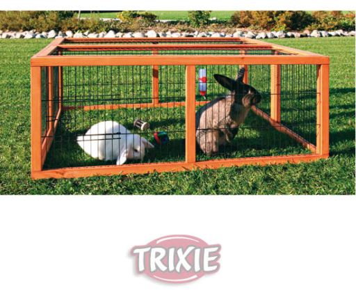 Miscota Poland, Czech Republic, Greece and Hungary - Online Shop for Pet Supplies Hideaways for Small animals Trixie Recinto Exterior Natura -Glazed pine -Stable wire grid, powder coated - Cover prevents the pet jumping out -Protection against birds of prey and cats -Large mid-level due to weather-protected shelter (ramp included) -With 3 doors - Halves of the roof can be opened separately from above (one half closed, as weather and sun protection) -Hook prevents the roof being opened by e.g. strong wind -Suitable for keeping a small group of animals-Measurements : 233 × 79 × 116 cm ····· 104205321