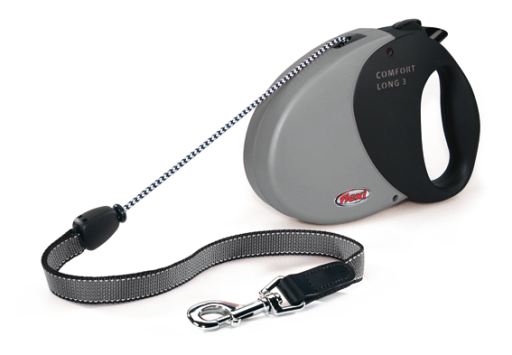Miscota Poland, Czech Republic, Greece and Hungary - Online Shop for Pet SuppliesLeads for Dogs Flexi Correa Classic Compact 3 Large 26 ft cord leash For dogs up to max. 44 lbs Soft-grip Lead belt with leather trimming Chrome plated snap hook Product weight: 12.7 oz approx. 3 casing colors: red, blue, and granite grey ····· 104202682