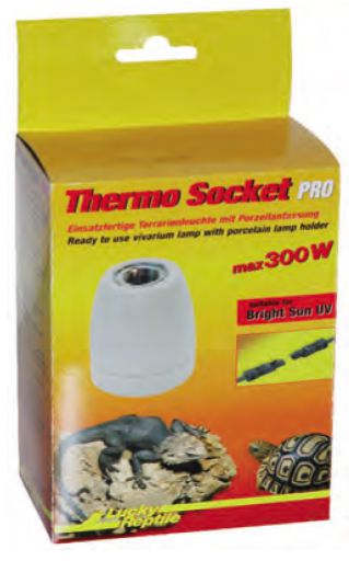 für 30.95€ kaufen ···· Miscota Poland, Czech Republic, Greece and Hungary - Online Shop for Pet Supplies Lighting for Reptiles Lucky Rep Thermo Socket Pro Contrary to the simple Thermo Socket lampholder sets the Thermo Socket PRO are completely wired and ready for use. \nThere are no electrical installations necessary.\nSpecial mounting accessories and a connector allow the terrarium installation without the need to take the lampholder apart.\nThe Thermo Socket PRO are also excellent for use with the Lucky Reptile Bright Sun UV lamps as their connector are compatible to the Bright Control ballasts which can simply be attached between lampholder and wall socket.\nThe power lead has a silicon insulation allowing the use of lamps up to 300W including the Osram Vitalux.\nOf course the Thermo Socket PRO are also compatible to the Lucky Reptile Reflector Sets.\nThe Plug and Play solution!\nMost Popular Model: with hinge! Lampholder can be directed as desired! ····· 104208822
