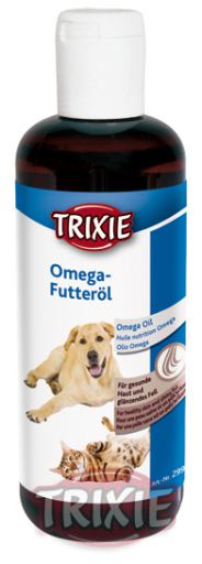 für 5.95€ kaufen ···· Miscota Poland, Czech Republic, Greece and Hungary - Online Shop for Pet Supplies Supplements for Dogs Trixie Aceite de omega para Perros,Gatos - For dogs and cats\n- Balanced mixture of high quality essential fatty acids\n- Rich in essential, poly- and monounsaturated fatty acids (Omega 3 and 6)\n- Enhances the coat composition\n- Assists regeneration of dry skin and can prevent itchiness and cracking of the skin\n- The valuable fatty acids promote the health of the cardiovascular system\n- Weight: 250 ····· 104209024