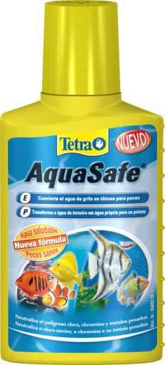 für 13.95€ kaufen ···· Miscota Poland, Czech Republic, Greece and Hungary - Online Shop for Pet Supplies Water Maintenance for Fish Tetra Pond Aquasafe 500ml Estanques 13002 Makes tap water safe for fish Neutralises harmful substances for nature-like aquarium water Substances in the tap water which are harmful to fish are immediately neutralized: Chlorine and Chloramine are eliminated and heavy metals like copper, zinc and lead are bound completely by a complexing agent Promotes clear and healthy water Contains bio colloids for beneficial bacteria growth which supports the creation of clear water Essential elements that are present in natural environments are added: Iodine for vitality, magnesium for growth and well-being The optimised vitamin formula reduces stress and supports long lasting health Gills and mucous membranes are protected by tangible colloid ingredients Works in seconds, long lasting effect Suitable for all freshwater and marine aquariumDo you know the Tetra AquaCare concept? An integrated product range that works together to provide balanced, clear water, and healthy fish. The AquaCare system includes SafeStart, AquaSafe, Test 6in1 and EasyBalance. These products have been rigorously tested by our leading laboratories to ensure they keep the water and fish in top condition, thereby allowing you the time to relax and enjoy your aquarium. They are simple to use, and allow you to easily set up and maintain an aquarium. Tetra AquaCare - for simplicity, reliability and great results!Treat all tap water by adding 5ml AquaSafe for every 10 liters of water. For aquarium set up, water change or fish transport. ····· 104202998