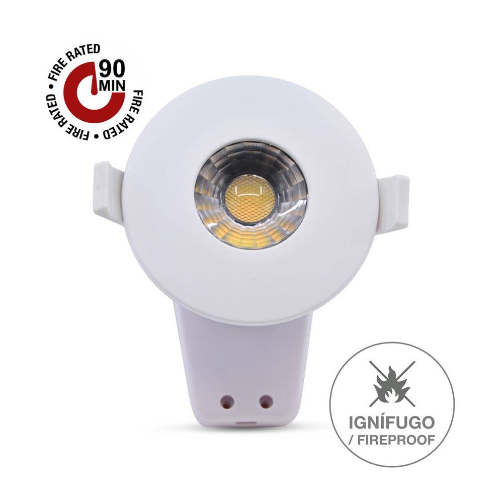 El downlight LED ignífugo de 8W es empotrable al techo directamente. Su cuerpo está fabricado en inyección de