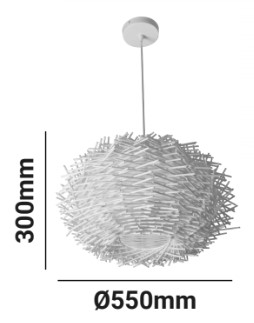 *CR**NL*| *CR**NL* Detalles técnicos: *CR**NL*Voltaje: 220-240V/AC *CR**NL*E27*CR**NL*Potencia Máx. 60W. *CR**NL*Casquillo E27 *CR**NL*Grado de protección: IP20 *CR**NL*Medidas: Ø550x300mm *CR**NL*1m de cable ajustable. *CR**NL* | *CR**NL* | *CR**NL*