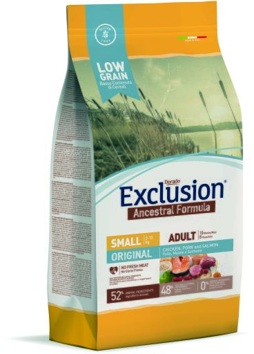 für 16.39€ kaufen ···· Miscota.de - Online Shop für Tiernahrung und Zubehör Komplettes Futter für erwachsene Hunde kleiner Größe, anfällig für Übergewicht, wenig aktiv oder sterilisiert (ab 10 Monaten). Aus der Analyse der angestammten Essgewohnheiten von Hunden und ihrer Vorfahren der Wölfe und ihre Fähigkeit, sich hauptsächlich von Fleisch zu ernähren, Dorado hat Ancestral Exclusion formuliert, eine vollständige und ausgewogene Nahrungslinie. Mit einer hoher Gehalt an dehydrierten tierischen Inhaltsstoffen und niedriger Getreidegehalt, ohne Gluten und nur mit natürlichen Antioxidantien konserviert. Es unterscheidet sich nach Größe, Alter und Lebensstil, in trockener und nasser Version. Beim Ausschluss der Vorfahren werden nur dehydrierte tierische Zutaten verwendet, die aus Fleisch gewonnen werden frisch durch einen bestimmten Kochprozess, bei dem mehr als 80% des Wassers entfernt werden was zu einem Produkt führt, das eine höhere Konzentration an Nährstoffen enthält mit dem gleichen angegebenen Gewicht. Kein frisches Fleisch Nur dehydrierte tierische Inhaltsstoffe, für einen größeren Nährstoffanteil als Produkte mit frischem Fleisch für das gleiche angegebene Gewicht. Glucosamin und Chondroitinsulfat Glucosamin, das die Produktion von Knorpel stimuliert, und Chondroitinsulfat, das die Knorpelproduktion verlangsamt Degradierung. Darmnutzen Präbiotika, Oligosaccharide mit vorteilhafter Wirkung für die Darmflora. Glänzender Umhang Lachsöl reich an Nährstoffen, die die Gesundheit der Haut fördern und den Glanz des Fells fördern. Schutz des Immunsystems Chelatiertes Zink, das das Immunsystem stärkt. Natürliche Konservierungsstoffe Es enthält nur natürliche Antioxidantien, die das Knabberei vor oxidativen Schäden schützen. Frei von Tierquälerei Nicht an Tieren getestet. Vorzugsweise vorher verwenden: siehe Datum und Charge auf der Verpackung. An einem kühlen und trockenen Ort aufbewahren. Gebrauchsanweisung: Nach den Angaben in der Tabelle trocken servieren und aufbewahren Dem Hund steht immer frisches Wasser zur Verfügung. Komposition Getrocknetes Huhn (25%), Sorghum (20%), Erbsen, dehydrierte Luzerne, Lachs dehydriertes (7%), dehydriertes Schweinefleisch (7%), dehydriertes Zichorienpulpe, hydrolysiertes Hühnerprotein, Hühnerfett, Hefe, Lachsöl (1%), Eier ganz dehydriertes Natriumchlorid, dehydrierte Kurkuma (0,3%), Fructooligosaccharide (0,2%), Mannanoligosaccharide (0,2%), Glucosamin (0,15%), Sulfat Chondroitin (0,09%), dehydrierte rote Himbeere (0,05%), dehydrierte Brombeere, dehydrierte schwarze Johannisbeere, dehydrierter Granatapfel, Yucca Schidigera. Nährstoffzusätze Vitamin A 17.000 IE. Vitamin D3 820 IE. Vitamin E 810 mg. Vitamin C 76 mg. Vitamin B1 12,5 mg. Vitamin B2 6,7 mg. Vitamin B3 29 mg. Vitamin B6 13 mg. Vitamin B12 0,2 mg. Vitamin H 2,1 mg. Folsäure 2,5 mg. Betain 1.400 mg. Kupfersulfatpentahydrat (Kupfer) 55 mg. Hydratisierte Aminosäure Kupferchelat 140 mg. Zinkoxid (Zink) 165 mg. Hydratisierte Aminosäure Zinkchelat 1.300 mg. Manganoxid (Mangan) 40 mg. Hydratisierte Aminosäure Manganchelat 350 mg. Natriumselenit (Selen) 0,7 mg. Kaliumiodid (Jod) 5 mg. Eisencarbonat (Eisen) 450 mg. Taurin 1.000 mg. L-Carnitin 300 mg. Mit natürlichen Tocopherolen konserviert. Analytische Komponenten 32,0% Rohprotein. 18,5% Rohöle und Fette. 6,0% Rohasche. 3,2% Rohfaser. 8,0% Luftfeuchtigkeit. 1,2% Calcium. 1,0% Phosphor. ····· 100979182