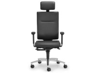 für 1198.02€ kaufen ···· Profistuhl.de - Professionelle Arbeitsstühle InTouch black edition InTouch black edition. Die black edition" des InTouch vereint die klassische Griffigkeit des edlen Premium-Leders mit dem guten Gefühl des bewussten Genießens. Wer so sitzt, für den ist Qualität Gewissheit, Lebenskunst und Freude zugleich. Der Chef-Drehstuhl mit hoher Rückenlehne und Nackenstütze (82 cm) verfügt über schwarze Kunststoffteile, optionale Loop-Armlehnen und auf Wunsch ein Aluminium-Fußkreuz in polierter Ausführung. Exklusive Polsterung in feinstem Echt-Leder. Mit natürlichen Ölen behandelt, angenehme Haptik, atmungsaktiv, und feuchtigkeitsregulierend. Drehstuhl - Drehsessel mit Nackenstütze Synchron-Dynamic-Mechanik 4fach arretierbar organisch geformte hohe Vollpolster-Rückenlehne mit Nackenstütze Sitzschale dreigeteilt für durchgehenden Körperkontakt Sitztiefenverstellung, 5 cm Sitzneigeverstellung, automatisch bis -4 Grad höhenverstel..." ····· 10027129