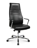 für 385.04€ kaufen ···· Profistuhl.de - Professionelle Arbeitsstühle Topstar Chairman X Leder-Chefsessel, schwarz, mit Armlehnen EXKLUSIVER DESIGN-CHEFSESSEL IN FEINEM RINDsLEDER ALS HOCHLEHNER Rückenlehne mit eingearbeiteter Lendenwirbelstütze, horizontal mehrfach abgesteppt, in echtem Leder bezogen (Lehnenrückseite und Seitenteile in farbgleichem Kunstleder) Fusskreuz Aluminium poliert Stufenlose Sitzhöhenverstellung mit Top-Lift Bequemer Muldensitz mit komfortabler Knierolle, quer abgesteppt, in echtem Leder bezogen (Seitenteile in farbgleichem Kunstleder) Komfortable Synchron-Mechanik zur synchronen Verstellung von Sitz- und Rückenlehnenneigung, 4-fach arretierbar, Federkraft individuell auf das Körpergewicht einstellbar Flügelarmlehnen aus verchromtem Stahl mit Leder Armauflagen lastabhängig gebremste Sicherheitsdoppelrollen für Teppichböden max: Nutzergroesse: 1,92 m max. Nutzergewicht: 110 kg Nutzungsdauer/Tag: 8 Stunden 3 Jahre Herst... ····· 10027123