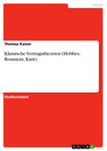 ····· lezzter Preis 10.99€ ···· Rheinberg-Buch.de - Bücher, eBooks, DVD & Blu-ray Studienarbeit aus dem Jahr 2003 im Fachbereich Politik - Politische Theorie und Ideengeschichte, Note: 1, Philipps-Universität Marburg, Sprache: Deutsch, Abstract: In dieser Arbeit werden die Vertragstheorien von Hobbes, Rousseau und Kant in kompakter Form dargestellt und Unterschiede der Theorien aufgezeigt. Bei der Darstellung wird chronologisch vorgegangen und zunächst die Vertragstheorie von Thomas Hobbes erläutert (Abschnitt 2). Im Anschluss folgen Rousseau (Abschnitt 3) und Kant (Abschnitt 4). Bei den drei Vertragstheorien erfolgt jeweils zunächst eine Beschreibung des vorstaatlichen Naturzustandes. Im Folgenden wird der staatsbegründende Gesellschaftsvertrag mit seinen Voraussetzungen und Ausgestaltungen dargestellt. Von besonderem Interesse bei der Analyse der Theorien und der Herausarbeitung der Unterschiede in der Argumentation der drei Denker ist das Staatsbild, welches sich aus den geschlossenen Verträgen ergibt. Diesem Punkt widmen sich jeweils die Ausführungen im Anschluss an die Abschnitte über den Naturzustand und den Gesellschaftsvertrag. Vergleichende Betrachtungen der Theorien erfolgen nicht in einem eigenen Abschnitt, sondern werden bei der Darstellung einer zeitlich nachgelagerten Vertragskonzeption mit eingebunden. ····· 10361190822