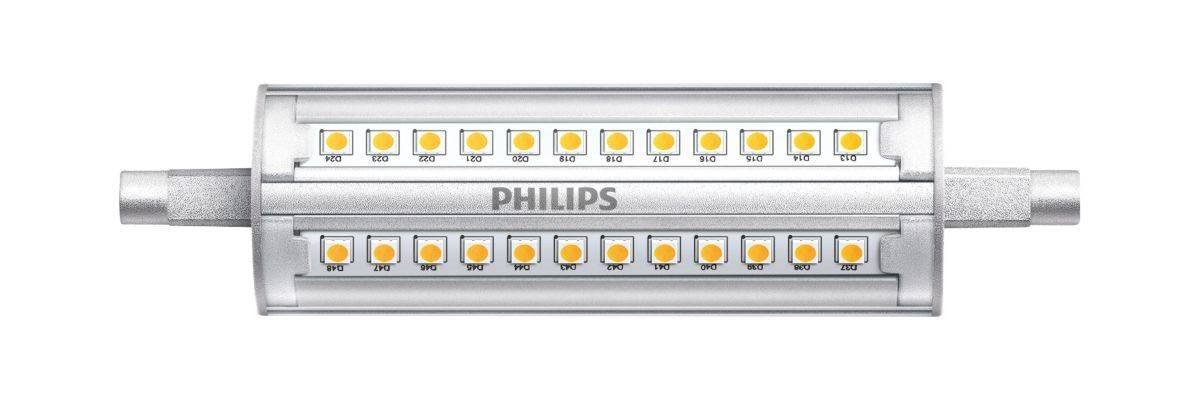····· lezzter Preis 20.99 EUR€ ···· Barcelona LED. Tienda de iluminación LED y lámparas. Bombilla LED R7S regulable que reemplaza la lámpara halógena lineal de doble terminal. Bajo consumo de energía de las lámparas LED. Perfecta adaptación en luminarias decorativas en comercios y hostelerias. Potencia de 14W y una intensidad lumínica elevada de 1600 lúmenes. Se puede elegir entre la temperatura de color de 3000ºK, 1600lm, con referencia 57879700 y blanco neutro de 4000ºK, 1800lm, con referencia 57881000. Equivale a una potencia de 100W. Bombilla LED R7S regulable de CorePro LEDlineal R7S Philips, productos de la mejor calidad a un precio asequible. Eficacia lumínica de 114.29lm/W. Ideal para instalar en salas de estar, pasillos, luminarias de exterior, lámparas de pie, iluminación de construcción, etc.*CR**NL*Entrega en 15 Días*CR**NL*220-240 V*CR**NL*3000ºK;4000ºK*CR**NL*Regulable ····· 103501641