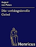 für 1.99€ kaufen ···· Rheinberg-Buch.de - Bücher, eBooks, DVD & Blu-ray August von Platen: Die verhängnisvolle Gabel / Der romantische Ödipus. Neudruck der Erstausgaben, herausgegeben von Irmgard Denkler und Horst Denkler, Stuttgart: Philipp Reclam jun., 1979 [Universal-Bibliothek Nr. 118 [4]]. Entstanden 1827" 1828. Erstdruck: Stuttgart/Tübingen (J.G. Cotta), 1829. Uraufführung durch eine Studentengruppe am 04.06.1855, Augsburger Hof, München. ····· 1036113700