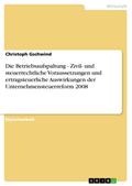 ····· lezzter Preis 20.99€ ···· Rheinberg-Buch.de - Bücher, eBooks, DVD & Blu-ray Diplomarbeit aus dem Jahr 2009 im Fachbereich BWL - Rechnungswesen, Bilanzierung, Steuern, Note: 1.3, Universität Augsburg, Sprache: Deutsch, Abstract: Die Unternehmensteuerreform 2008 bringt tiefgreifende Änderungen bei der Besteuerung der Unternehmen mit sich. Besonders betroffen sind die Fragen der Rechtsformwahl und -gestaltung sowie Finanzierungsentscheidungen. Die Auswirkungen der Unternehmensteuerreform sind im Einzelfall höchst unterschiedlich. Bei ertragstarken mittelständischen Unternehmen wurden im Bereich der Rechtsformwahl wesentliche Änderungen durchgeführt. Die wichtigsten Auswirkungen gehen dabei von der Steuersatzbegünstigung für nicht entnommene Gewinne bei Personenunternehmen, der Einführung einer Zinsschranke und der Senkung des Körperschaftsteuersatzes aus. Allerdings müssen auch Änderungen im Bereich des Gewerbesteuerrechts beachtet werden. Ein wesentliches Ziel der Reformbemühungen ist die Rechtsformneutralität. Im Bereich der mittelständischen Wirtschaft stehen die Rechtsformen der GmbH und der GmbH & Co. KG in unmittelbarer Konkurrenz. Diese beiden Rechtsformen unterscheiden sich wesentlich aus steuerlicher Sicht. Während die GmbH der Körperschaftsteuer und die Gewinnausschüttungen auf Ebene der Gesellschafter der Abgeltungsteuer unterliegen, wird die GmbH & Co. KG nach den Prinzipien der Personengesellschaft besteuert. Bei der GmbH & Co. KG wird insbesondere die hohe gesellschaftsrechtliche Flexibilität und die Flexibilität im Hinblick auf die Aufbringung des Eigenkapitals als Vorzug gegenüber der GmbH herausgestellt. 1 Im Folgenden soll daher untersucht werden, welchen Einfluss die umgesetzten Gesetzesänderungen auf die Steuerbelastung der GmbH & Co. KG haben und welche Handlungsempfehlungen für unternehmerische Entscheidungen sich dabei ergeben. ····· 10361190545