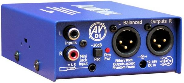 20: ARX AV-DI: Stereo-Direktbox für Audio-Video-Anwendungen. Ideal zum Anschluß von MP3-Playern, Computern, Diskman...Features:2 x Cinch-Eingang1 x Miniklinke-Eingang2 x XLR-AusgangTrafosymmetrisch Studio & Recording > Audiointerfaces > Zubehör Interfaces