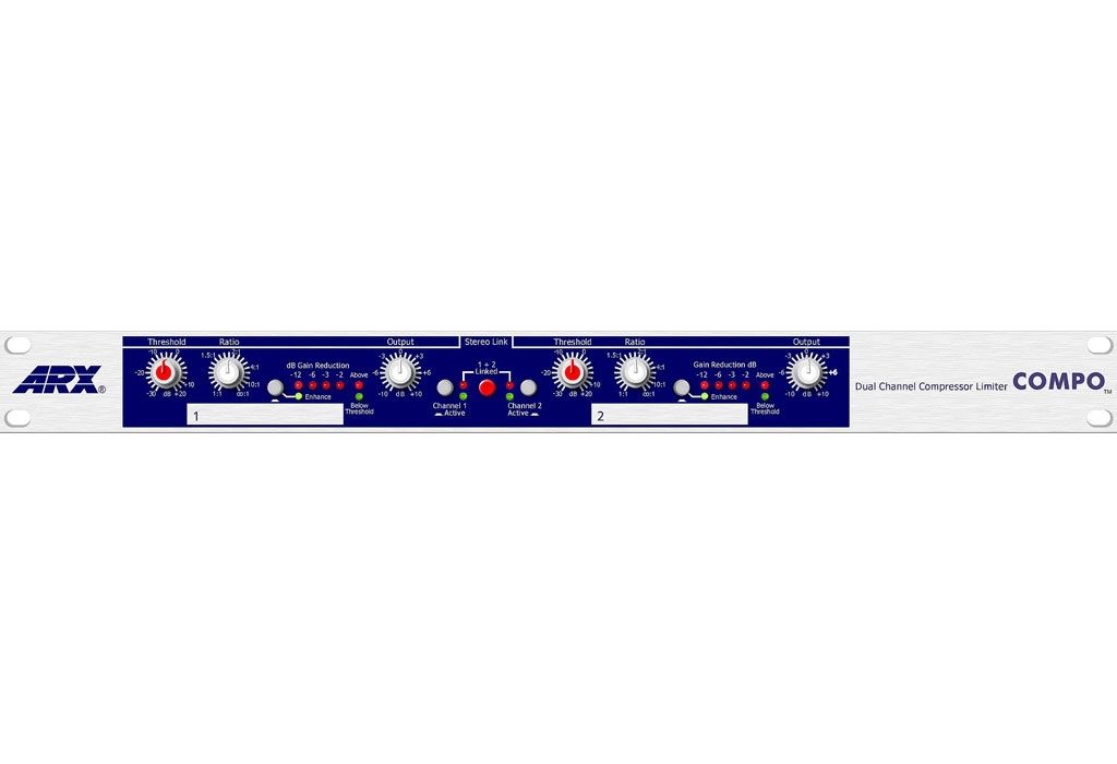 20: ARX Compo: Features:2-Kanal-Kompressor/Limiter/Enhancer2-Kanal-Mode mit Stereo-Link-FunktionLED-Anzeige für Gain-Reduktion und ThresholdLoudness-Enhance-Schalterechter Bypass-Schaltersymmetrische Eingängesymmetrische AusgängeAnschlüsse XLR und Klinke