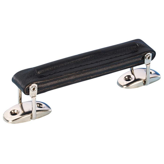 ··· Koffergriff Leder schwarz Mit elastischer Innenstrebe Vernickelte Befestigungen Befestigungslöcher: 5,1 mm